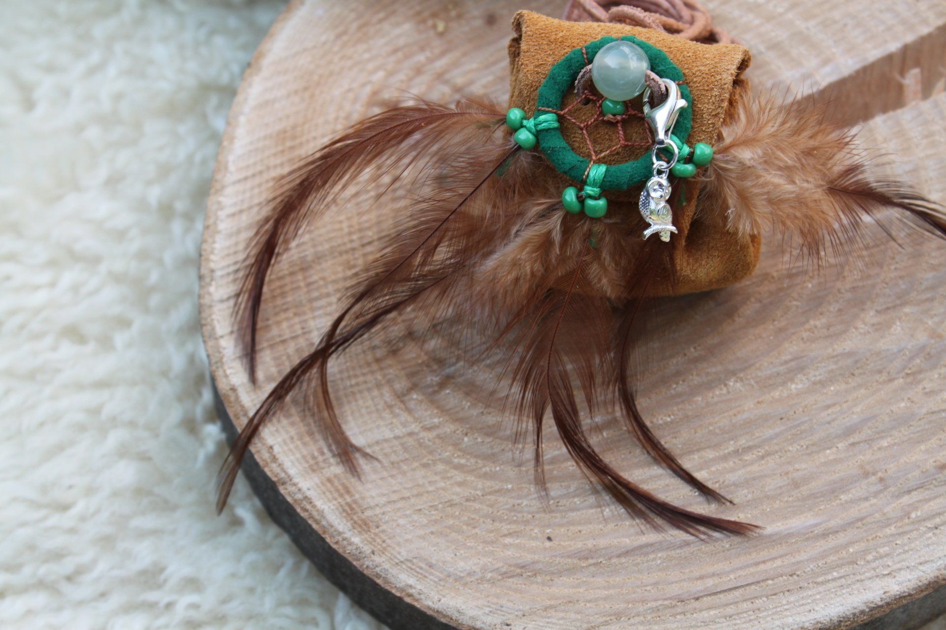 - mit dem Karabiner an dem Lederband oder an dem Traumfänger