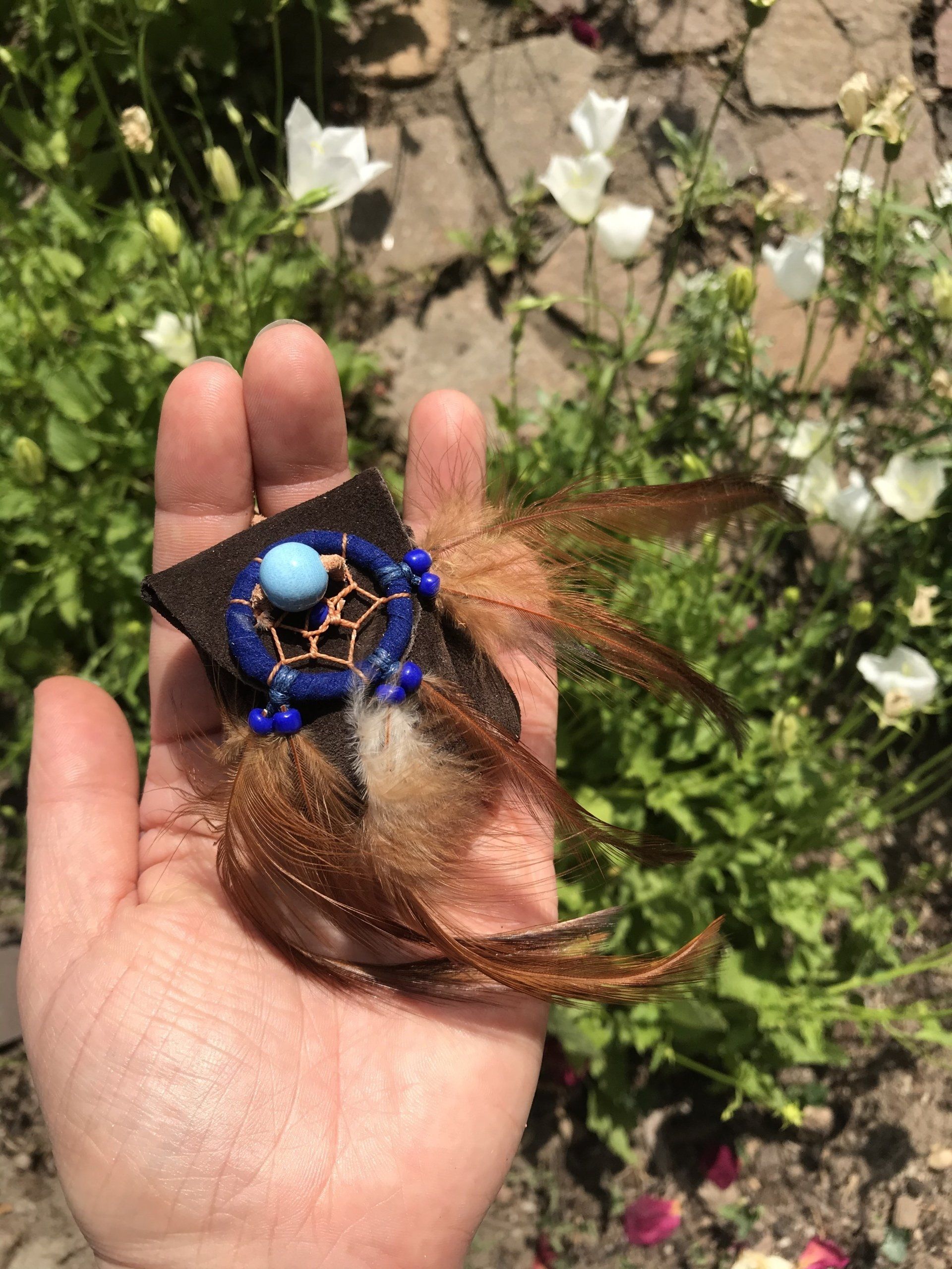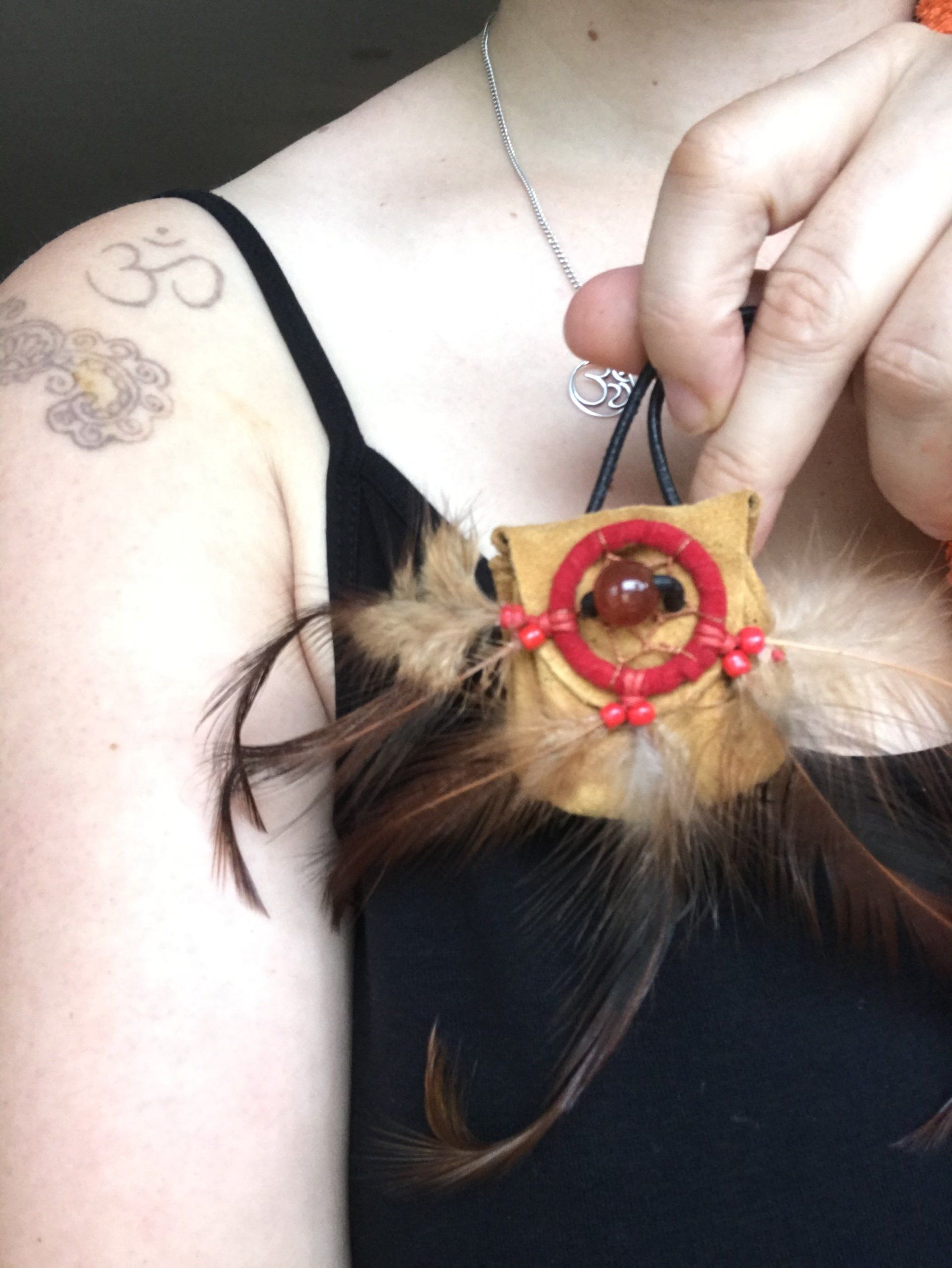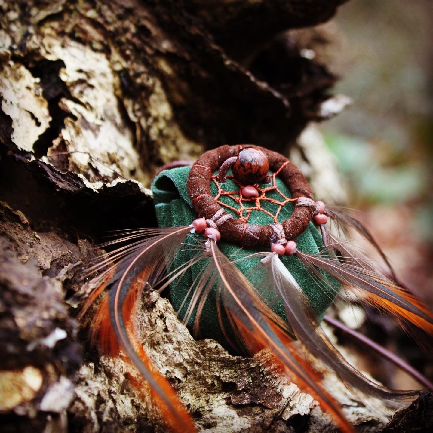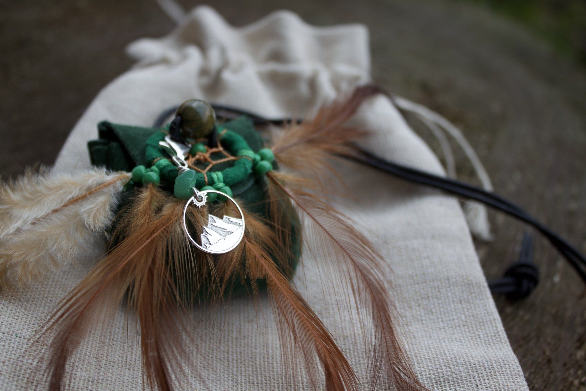 Ganz zwangsläufig ergab sich daraus die Fertigung von kraftvollen Medizinbeutelchen. Diese können nur in Handarbeit hergestellt werden, aus natürlichen Materialien, mit unterschiedlichen Inhalten, aber immer im schamanischen Sinne. Jeder Beutel bekommt in einem traditionellen Ritual einen eigenen Wächter, der für seinen Besitzer arbeitet. Deshalb ist es mir sehr wichtig, dass diese Medizinbeutel nicht achtlos herumliegen oder respektlos behandelt werden.