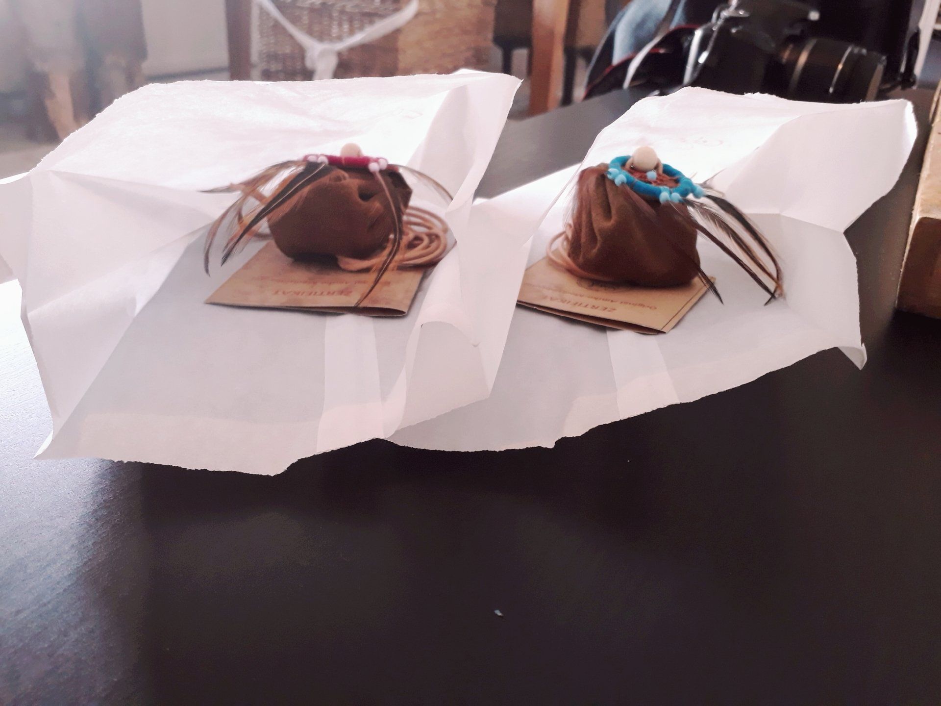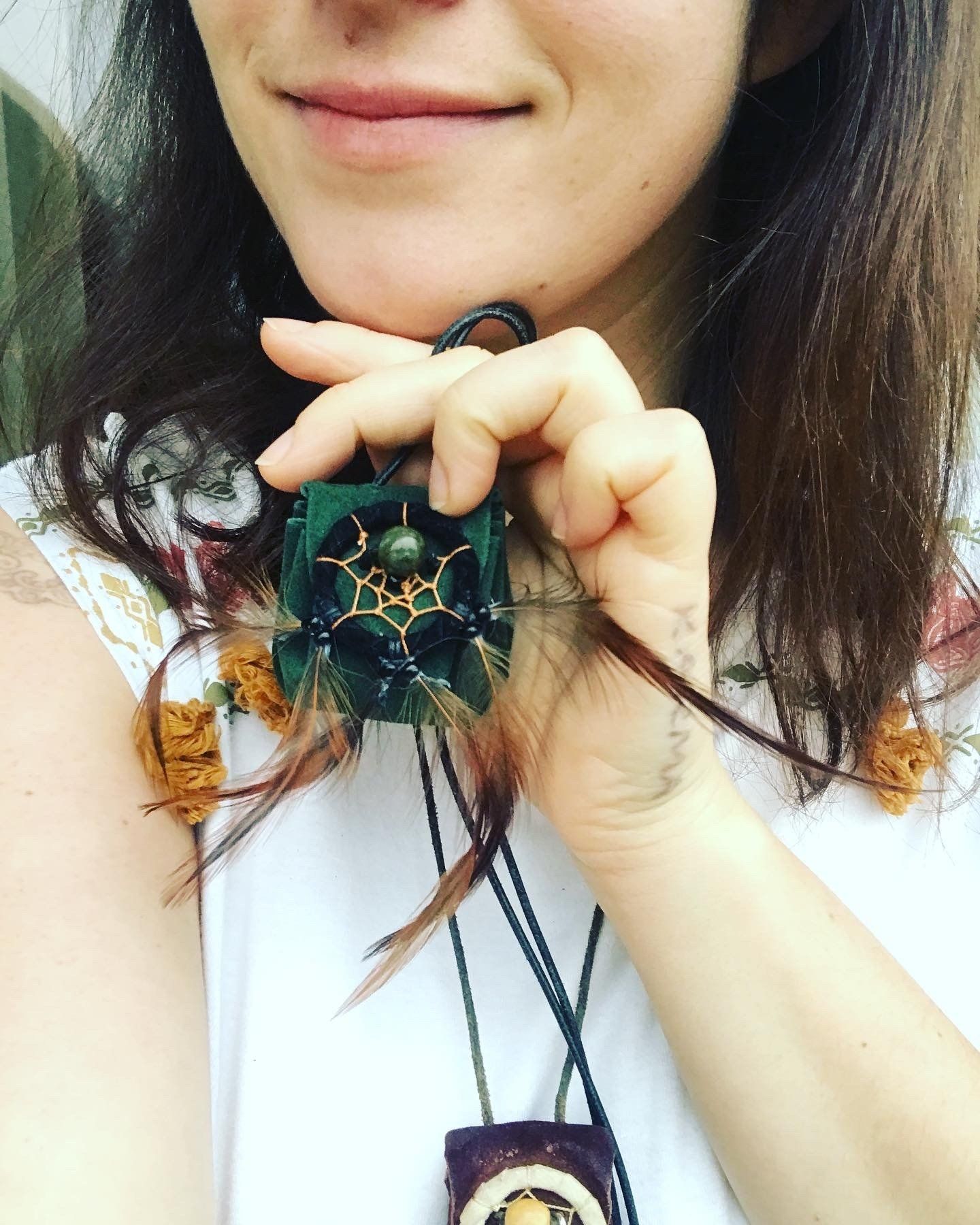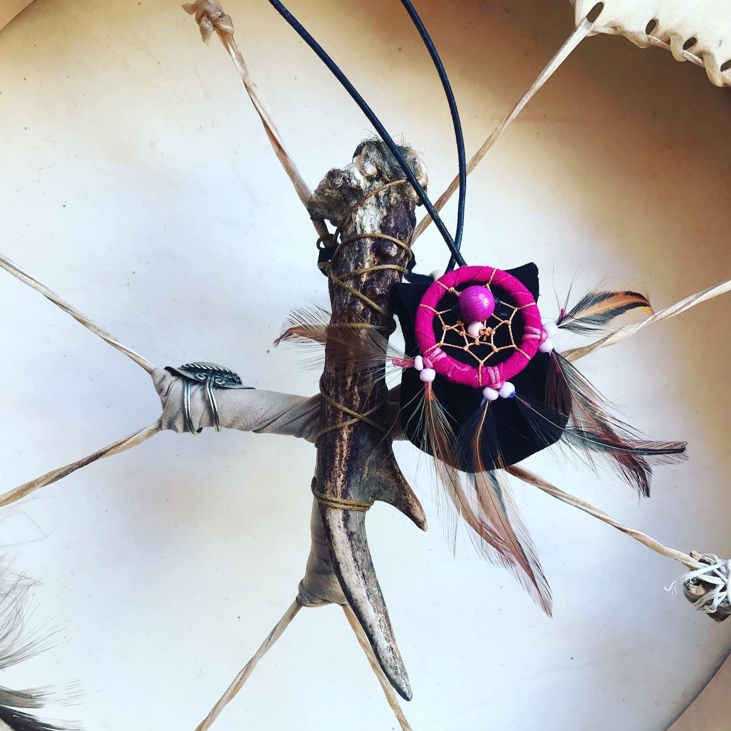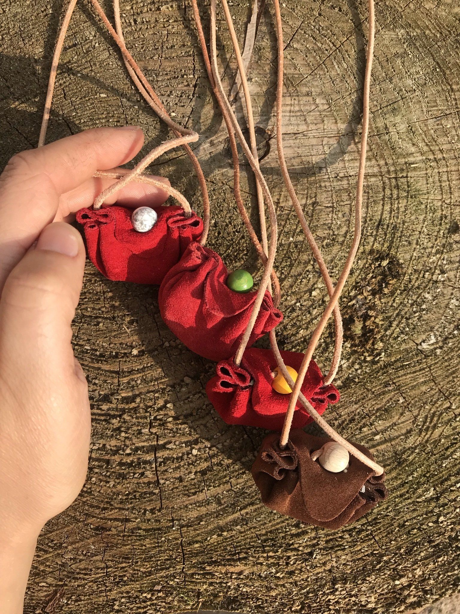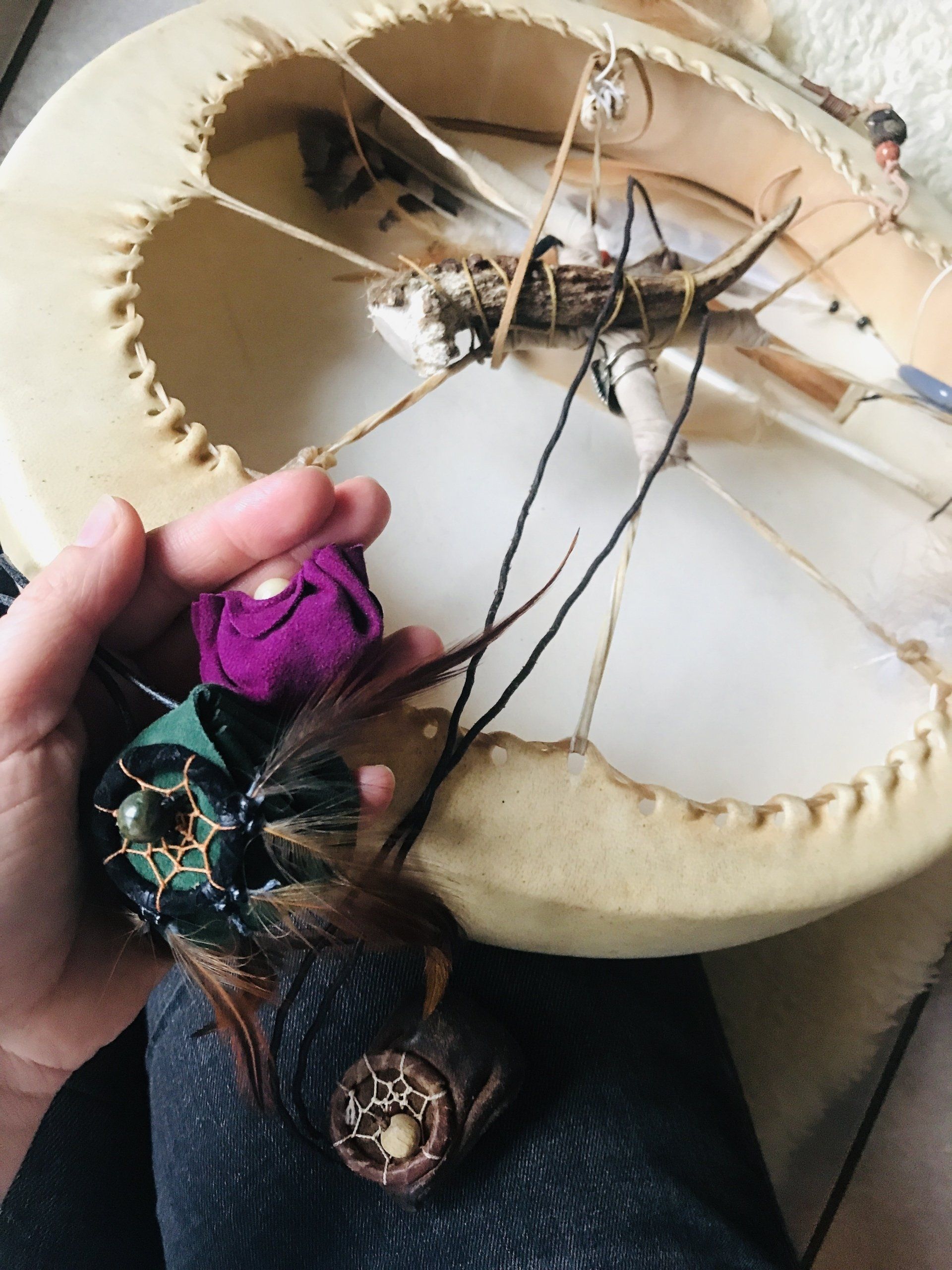 Ganz zwangsläufig ergab sich daraus die Fertigung von kraftvollen Medizinbeutelchen. Diese können nur in Handarbeit hergestellt werden, aus natürlichen Materialien, mit unterschiedlichen Inhalten, aber immer im schamanischen Sinne. Jeder Beutel bekommt in einem traditionellen Ritual einen eigenen Wächter, der für seinen Besitzer arbeitet. Deshalb ist es mir sehr wichtig, dass diese Medizinbeutel nicht achtlos herumliegen oder respektlos behandelt werden.