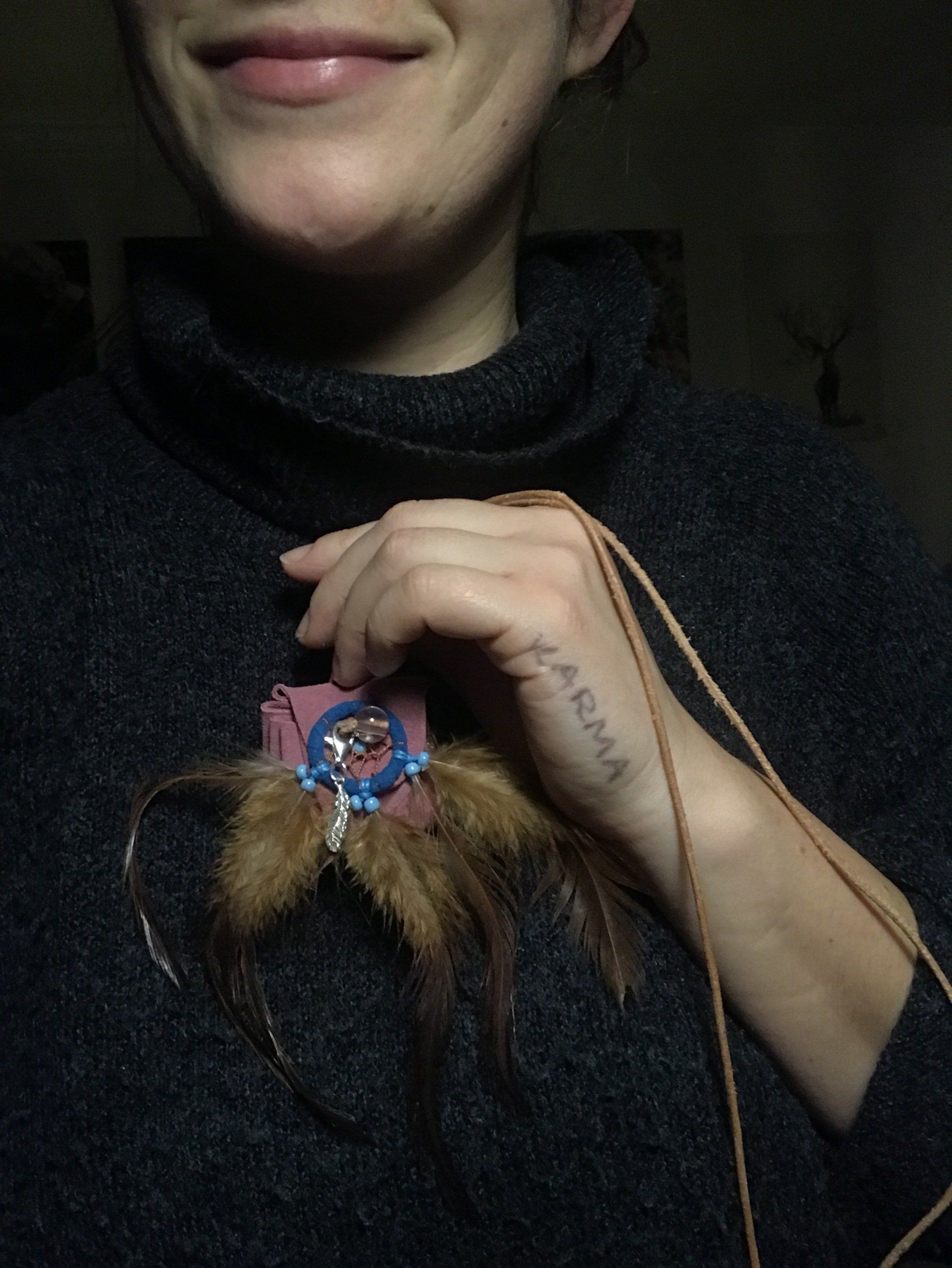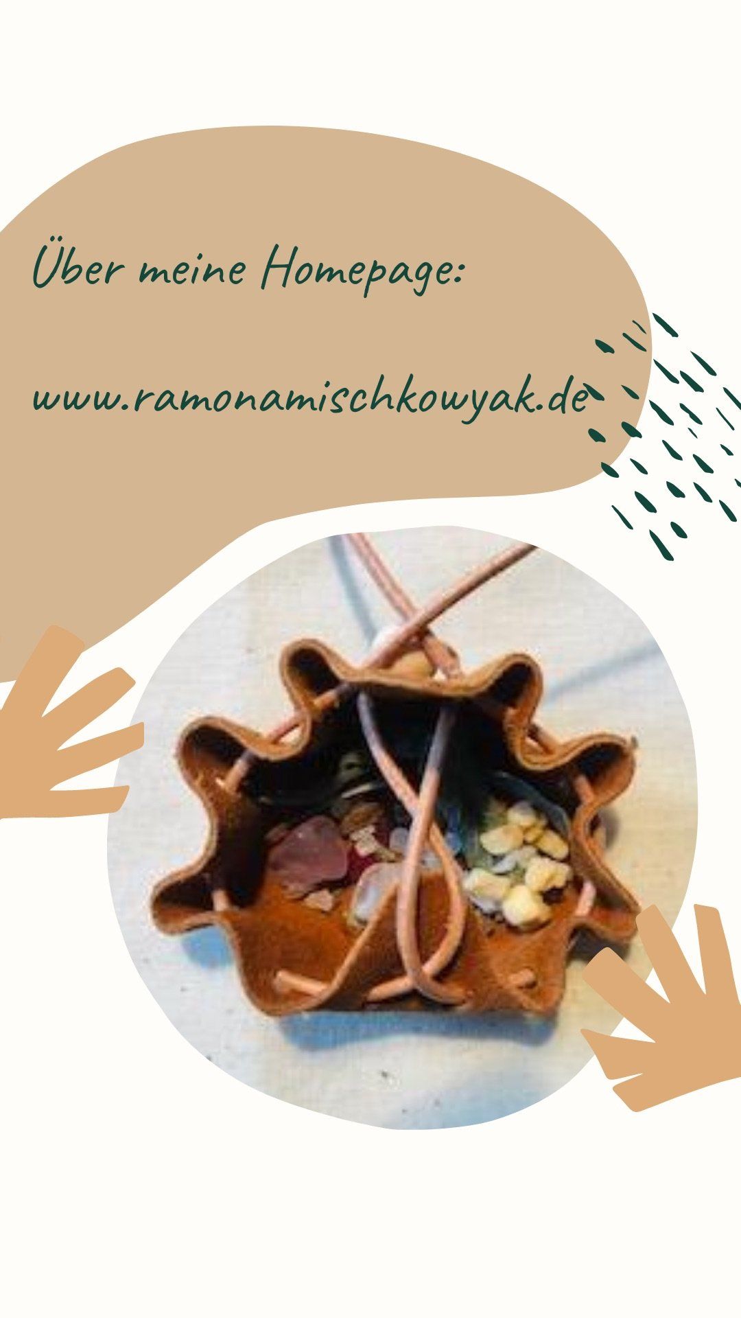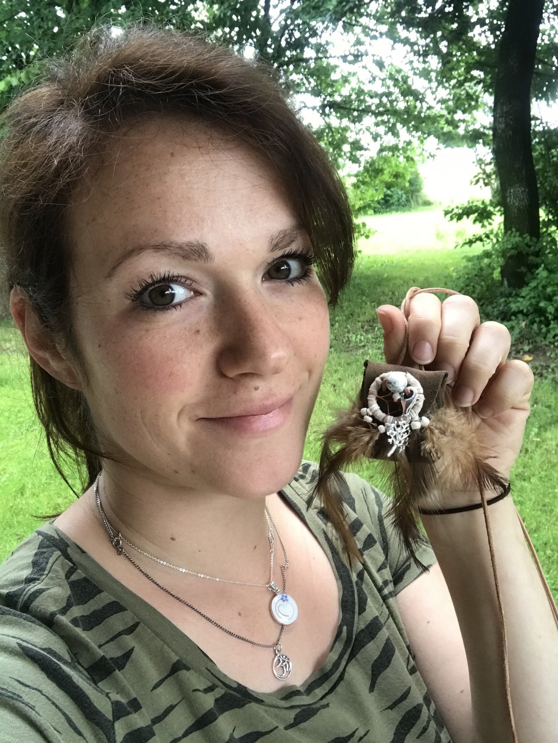 „Auf die Idee indianische Medizinbeutel herzustellen, kam ich erst einmal durch meine Familie. In einer ziemlich turbulenten Zeit, fertigte ich für meine Töchter und meinen Mann ganz persönliche, schamanische Beutelchen, die ihnen helfen sollten. Das taten sie dann auch so überzeugend, dass meine Medizinbeutel verliehen wurden, an Menschen, die auch dringend Hilfe brauchten. Jeder wollte dann natürlich auch einen eigenen Medizinbeutel bekommen.