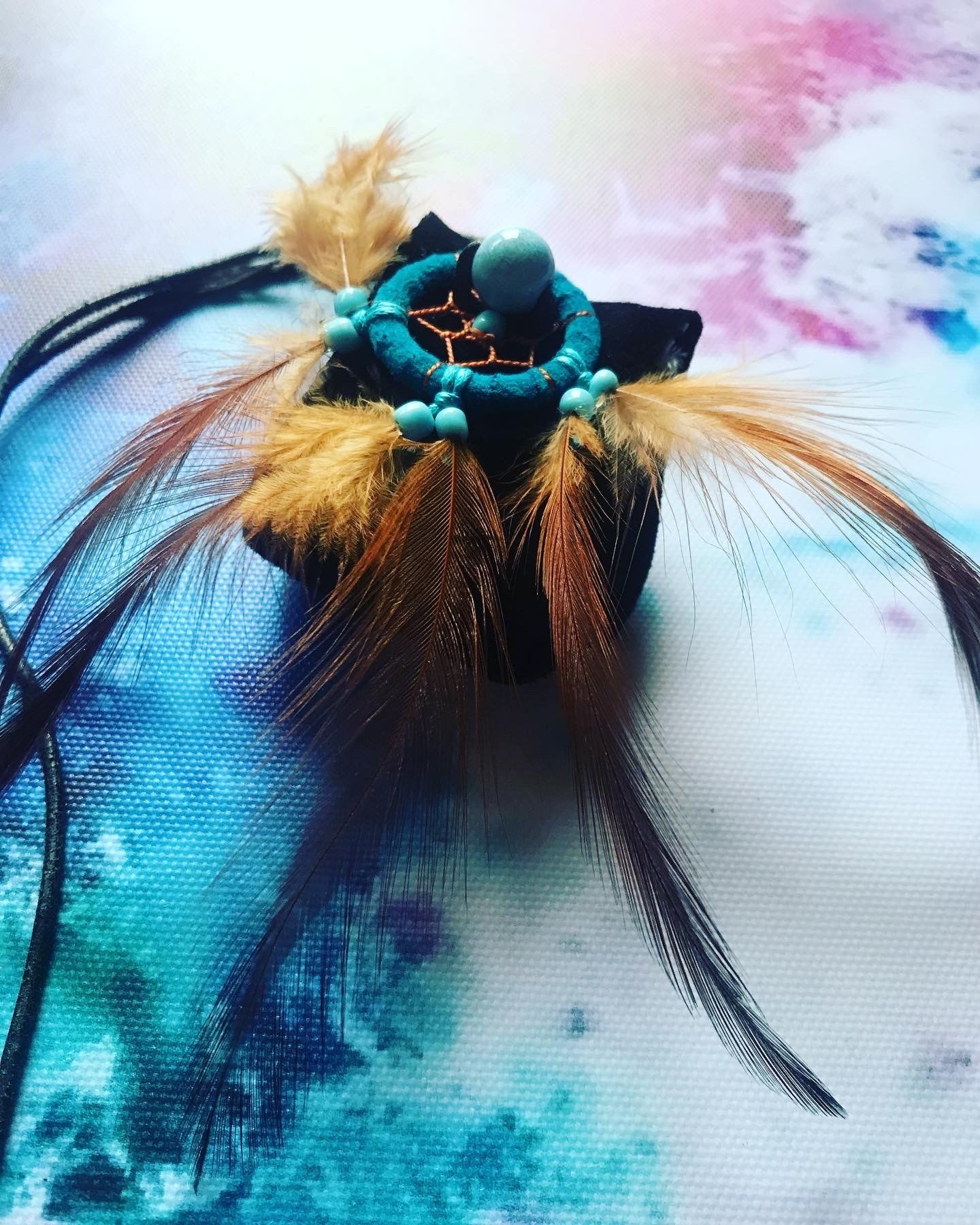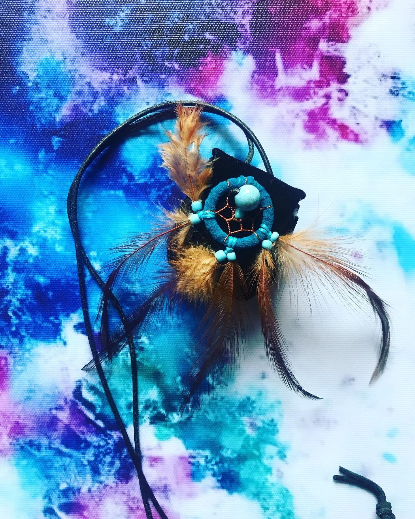 Groß: großer Lederbeutel mit Traumfänger